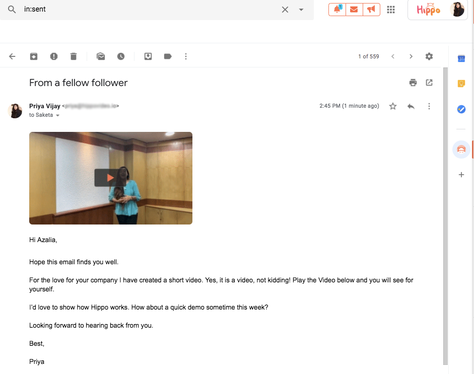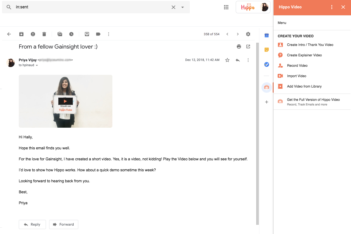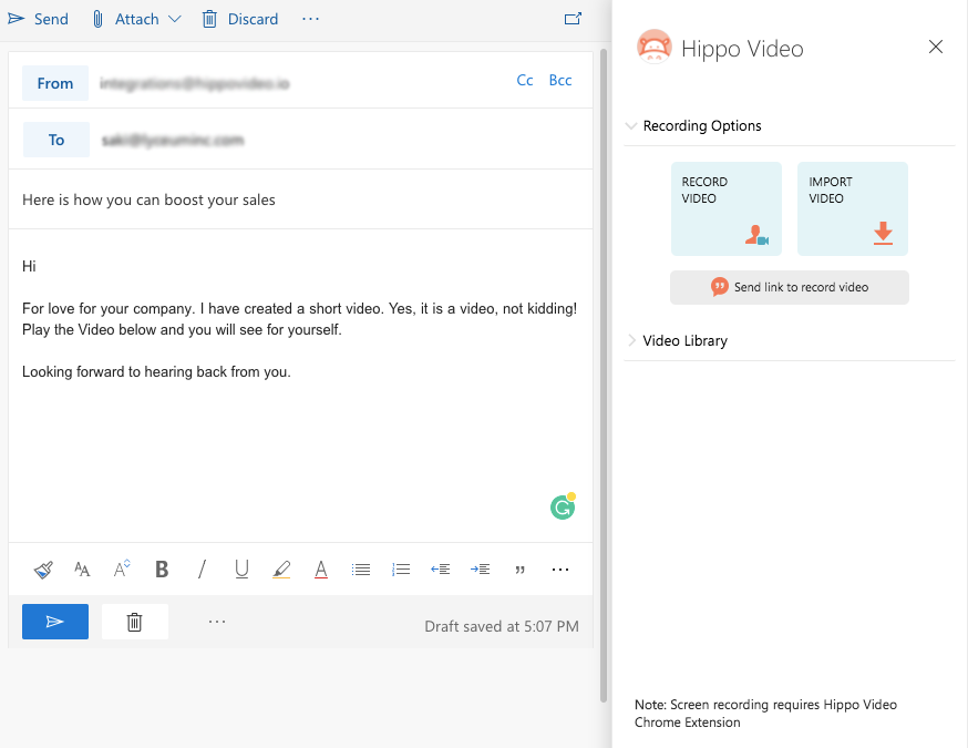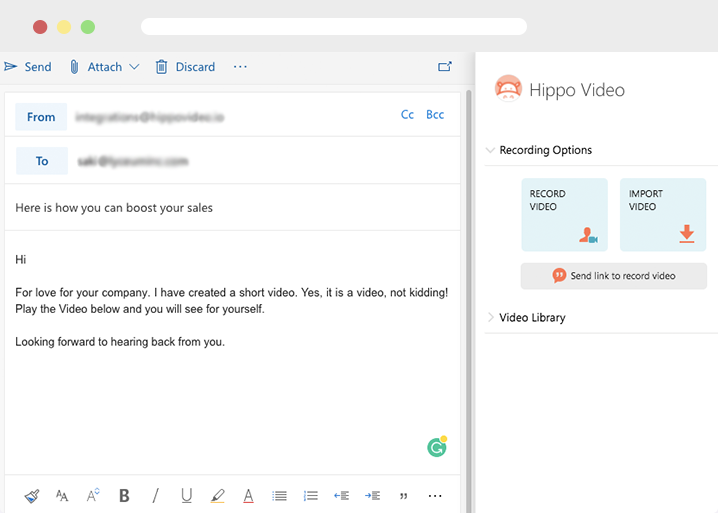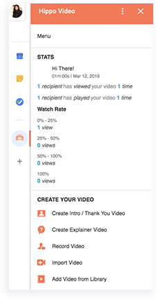 Record a personal video or import any video from your library and send them to your prospects via Outlook or Hippo Video’s Chrome extension. Engage your prospects and drive them to action.